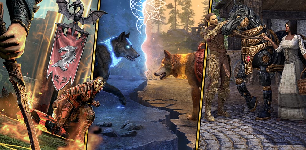 Découvrez les lignes de compétences revues et corrigées de Chevalier-dragon et d'arme à deux mains, qui ont été améliorées du point de vue visuel, sonore et fonctionnel. À partir de juin 2026, vous pourrez associer ces pouvoirs à la nouvelle version de la ligne de compétences de loup-garou pour véritablement mettre Tamriel à feu et à sang.